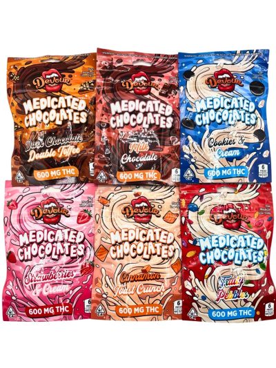 DEVOUR 600MG MEDICATED CHOCOLATES $12.00   Cash Price: $11 / Unit   •100MG Per Piece •6X Flavors °Cookies & Cream °Cinnamon Toast Crunch °Fruity Pebbles °Dark Chocolate Double Toffee °Milk Chocolate °Strawberries & Cream