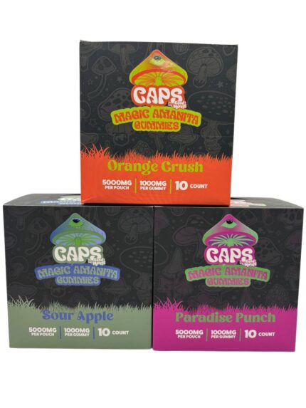 CAPS MAGIC GUMMIES 5000MG $15.00 Magic Mushroom Infused Dose: 5000mg Available in 3 Flavors Each bag comes with 5 Gummies