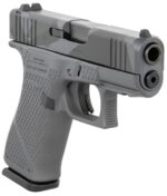 The Glock 43X combines a compact-size grip length, a built-in beaver tail and a subcompact-slim slide for a comfortably balanced firearm. Features Glock’s Safe Action system which provides a consistent trigger pull from the first to the last round; three automatic independently operating mechanical safeties; frame is made of polymer with hardened steel guides; ideal grip angle and low weight. The advanced surface treatment of the slide results in optimal hardness by considerably reducing wear and tear and it makes it corrosion resistant, even when operating in saltwater conditions. The matte surface minimizes light reflection. Its extractor serves as a loaded chamber indicator to comply with the laws of certain states and its position may visually and physically indicate whether there is a cartridge in the chamber of the pistol.