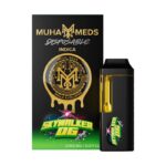 Muha Meds also offers dual-chamber 2.0ml disposables with flavors like Garlic Jelly /Blueberry Muffin, Gandy Apple/Pineapple Runts, and Strawberry Runtz/Habibi, among others.